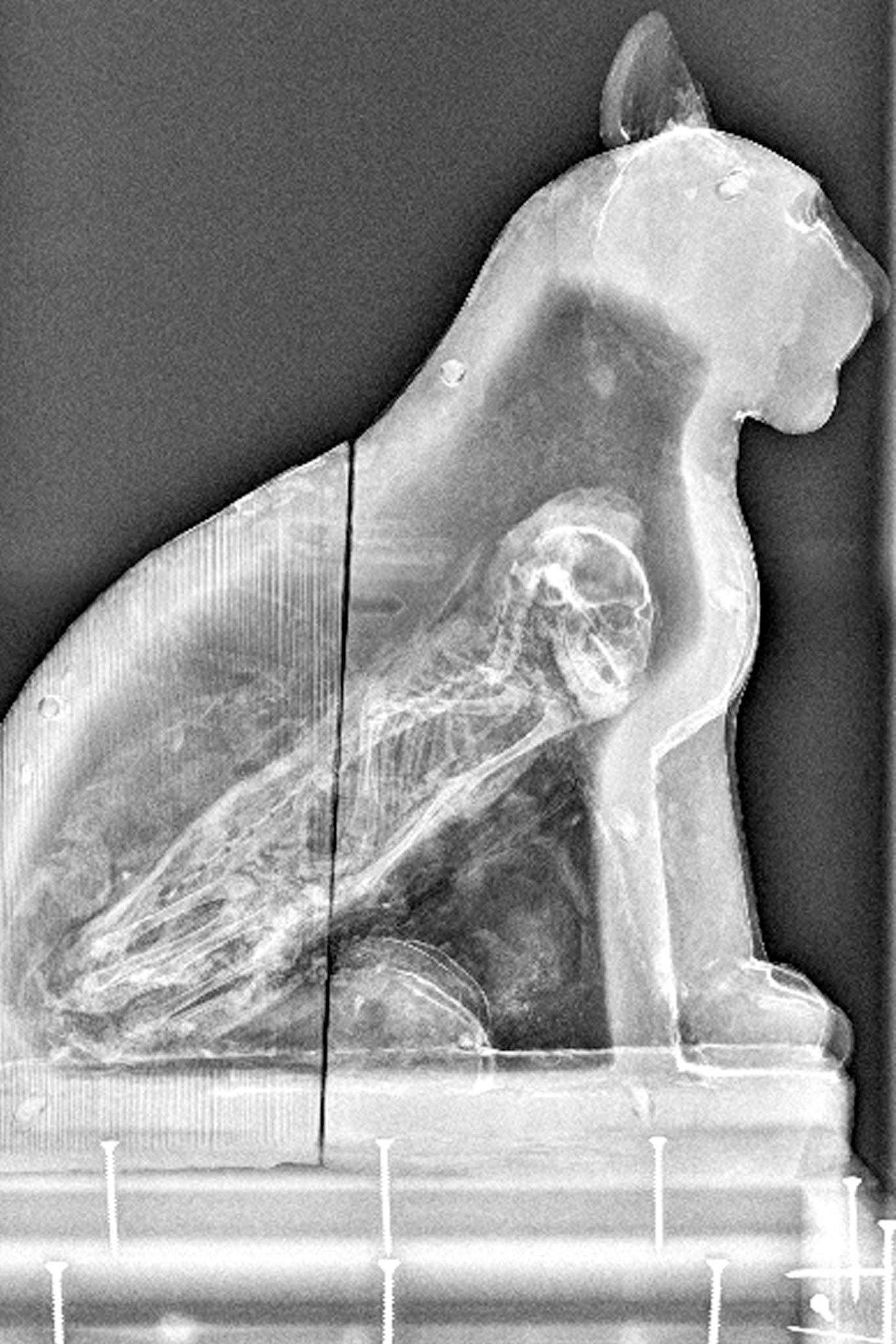 ในปี 2015 นักวิจัยจากพิพิธภัณฑ์ Manchester ได้ทำการ CT สแกน บล็อกไม้แกะสลักรูปแมวจากเมืองซัคคารา ประเทศอียิปต์ ของชิ้นนี้ได้รับบริจาคมาในปี 1921 (พ.ศ.2464) และไม่ได้รับการตรวจสอบมานานเกือบศตวรรษ การสแกนเผยให้เห็นโครงกระดูกแมวที่สมบูรณ์อยู่ภายใน และกระบวนการทำมัมมี่ที่พิถีพิถันของอียิปต์โบราณ