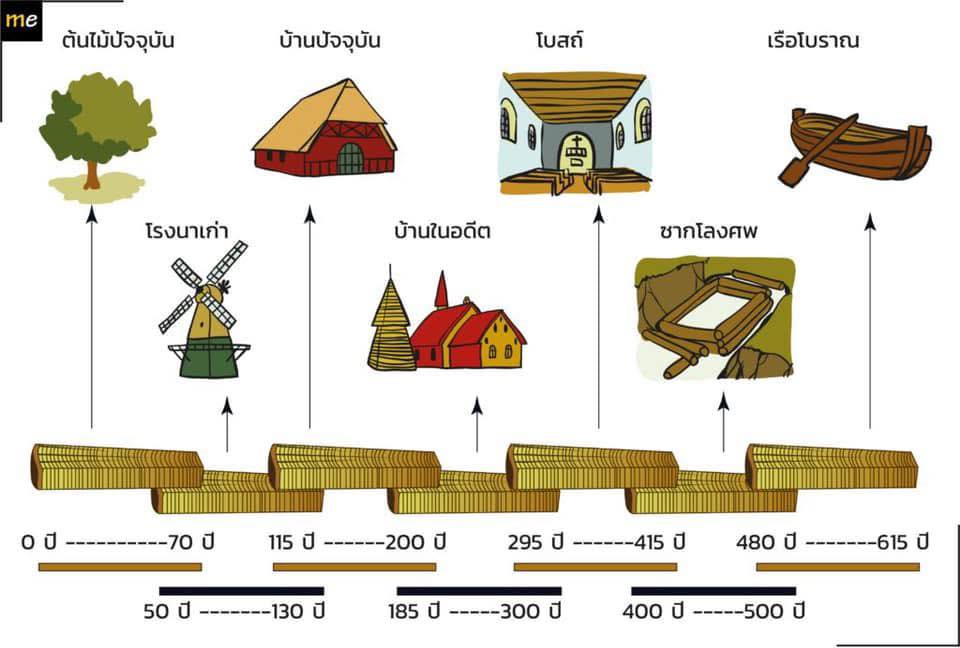 #ภาพ : หลักการสร้างชุดลำดับวงปีต้นไม้ (ring sequence) จากตัวอย่างไม้ที่สะสมได้ในภูมิภาคหรือภูมิอากาศเดียวกัน