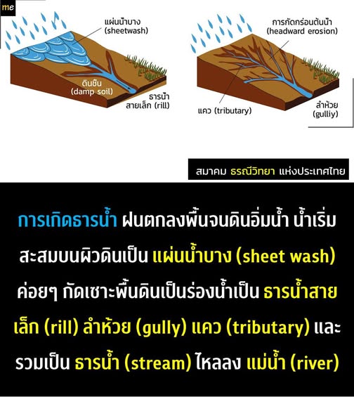 การเกิดธารน้ำ ฝนตกลงพื้นจนดินอิ่มน้ำ น้ำเริ่ม